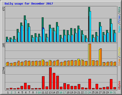 | Day | Hits | Files | Pages | Visits | Sites | KBytes | ||||||